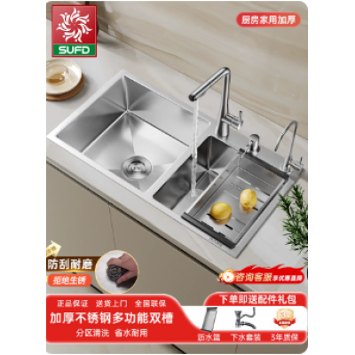 首页 > 日用百货 > 加厚304不锈钢双槽洗菜盆厨房家用手工洗碗槽台下洗碗池水槽套餐