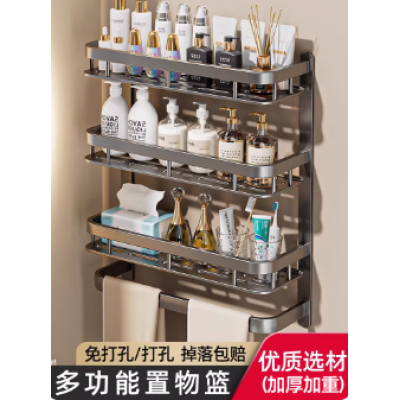 首页 > 日用百货 > 太空铝卫生间置物浴室架子厕所挂墙洗手间洗漱台卫浴免打孔壁挂