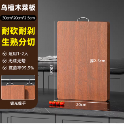 首页 > 日用百货 > 乌檀木菜板抗菌防霉家用食品级实木砧板厨房专用双面切菜案板粘板